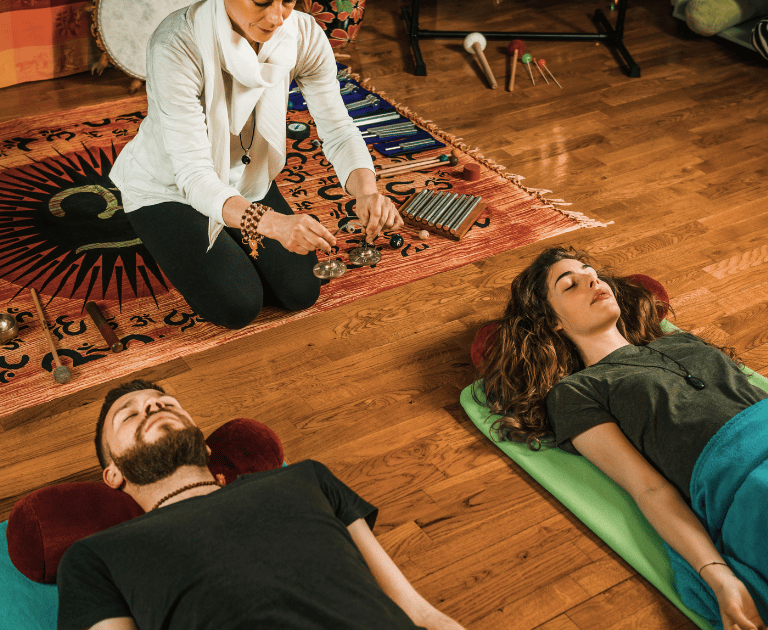 Les vibrations sonores issues des instruments et de la voix ainsi que les vibrations engendrées par la gestuelle précise des mains amènent le corps à entrer en résonance, favorisant la libération des blocages émotionnels et l'apaisement des douleurs.